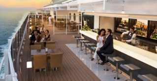 Das innovative verglaste Atrium erstreckt sich über vier Decks und kreiert eine spektakuläre Atmosphäre mit live Unterhaltung und mit atemberaubenden Meerblick.